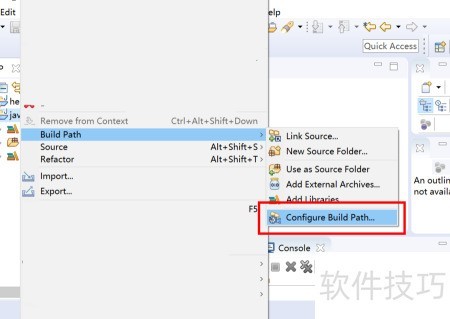 8、 重启或注销后启动Eclipse,右键点击项目选择配置构建路径。