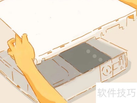 3、 拆除顶部的格栅,若尚未取出硬盘,请此时将其抽出。你会注意到该侧并非平整,而是设计有台阶结构以适配硬盘外形。首先松开位于台阶边缘凸起处的两个卡扣,接着像之前步骤那样打开白色边框上显露的另外两个卡扣。随后,最后一个卡扣会出现在某块橡胶垫下方。此卡扣位置贴有封条,微软将依据该封条是否破损来判断设备是否仍处于保修状态,操作时需格外留意。