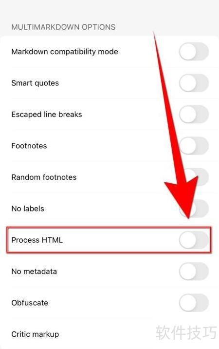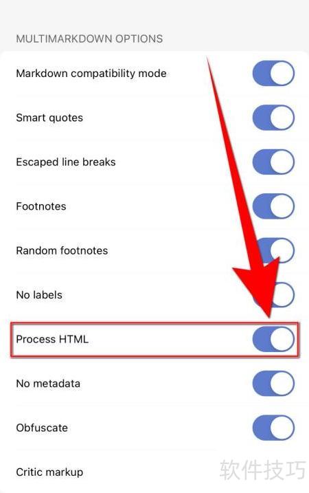 2、 在设置界面中,点击Process HTML选项后的圆形图标。