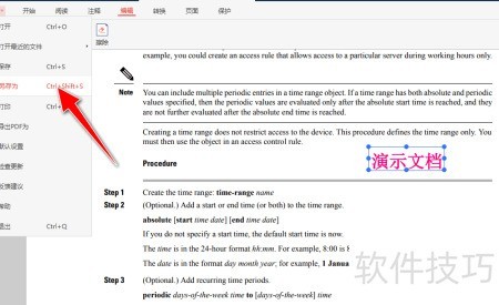 6、 操作完成后,点击文件菜单中的另存为,将文档保存至本地计算机。