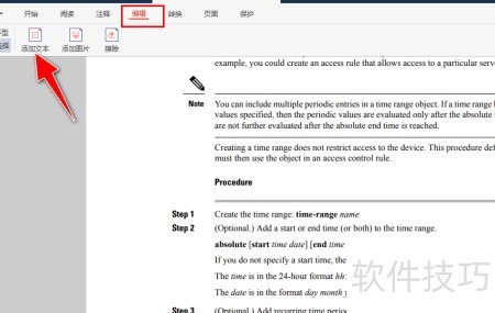 4、 在编辑菜单中选择并点击添加文本按钮。
