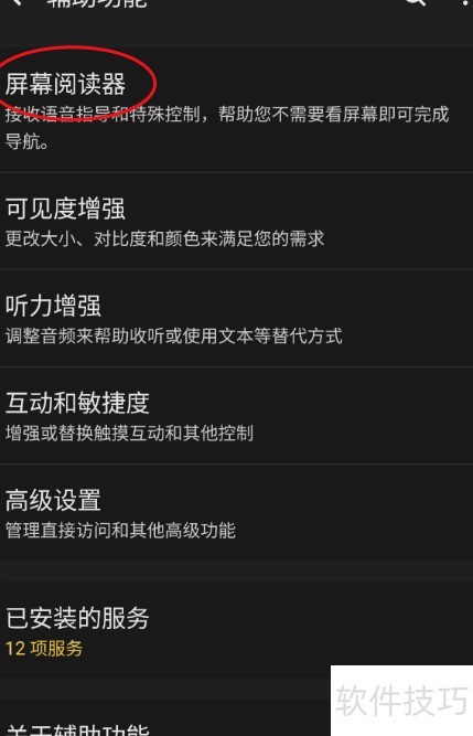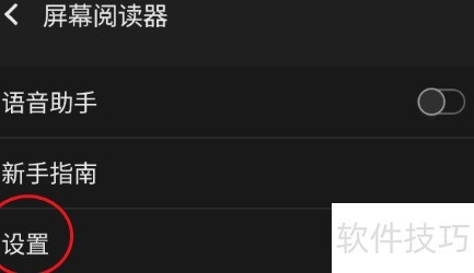 6、 进入屏幕阅读器,点击设置选项