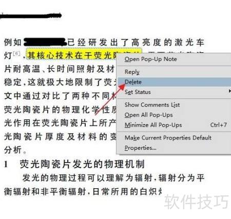 4、 若选中文本有误或需删除已标记内容,可点击黄色背景区域,右键选择Delete选项即可完成删除操作。