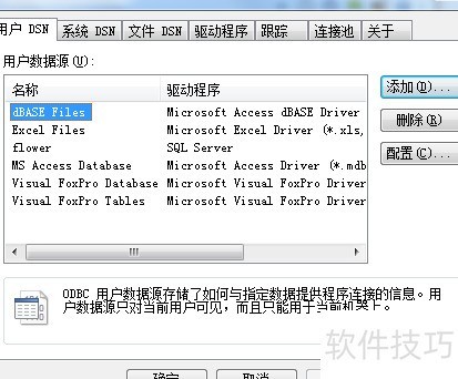 4、 在用户DSN界面点击添加选项