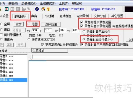 4、 提醒大家,选择录制区域时,点击边框可查看视频的宽高像素,请记录下来以备使用。录制完成后,按下F2键即可停止录制操作。