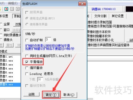 6、 仅勾选平滑缩放,其余不选,点击确定。在弹出窗口中输入文件名转盘,选择保存至桌面,点击保存即可完成SWF转换,随后进入下一步操作。