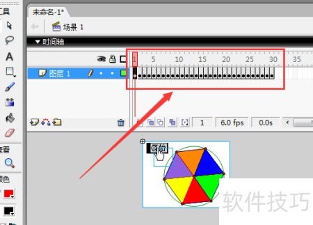 8、 点击文件菜单,选择导入并导入到舞台,找到桌面的转盘.swf文件并打开完成导入。接着点击控制中的播放功能,查看动画中是否存在多余动作,将对应多余的帧逐一删除,持续精简直至无法再删,以最大程度减小文件体积。