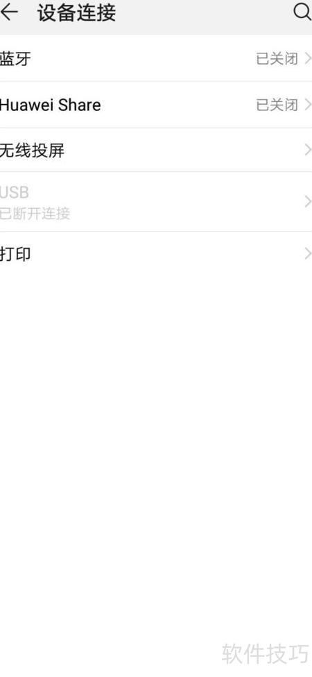 2、 进入设备连接页面后,第二行为华为分享功能,默认处于关闭状态。点击该选项,即可跳转至华为分享的设置界面,进行相关操作与调整,方便用户根据需求开启或配置此功能。