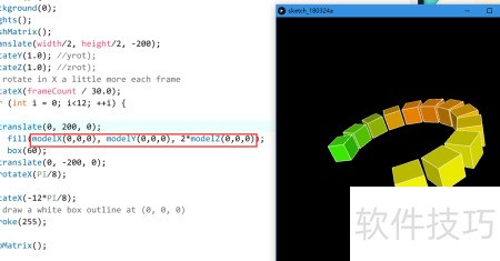在Processing中,利用modelX、modelY、modelZ与screenX、screenY、screenZ函数进行三维坐标与屏幕坐标的相互转换。