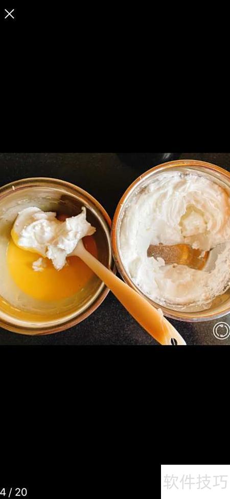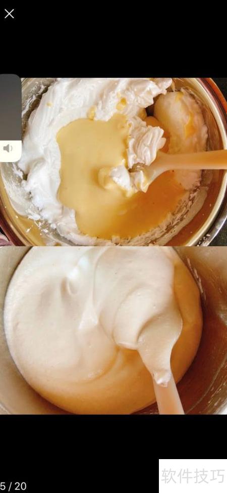 5、 将蛋黄糊倒入蛋白中,轻轻拌匀即可。
