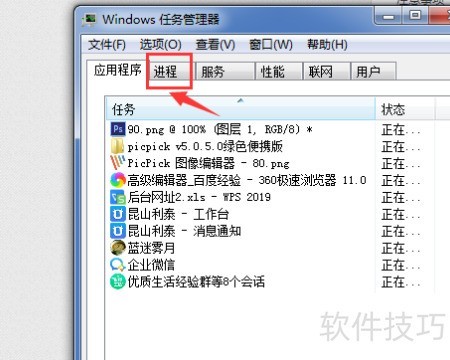 3、 接着点击进程选项