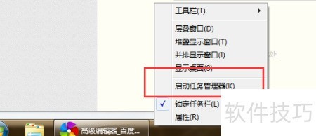 6、 在任务栏空白处右键点击,选择启动任务管理器即可。