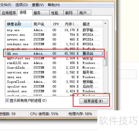 8、 找到正在运行的程序,先结束其进程,再进行删除操作即可。