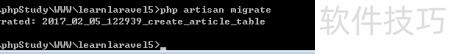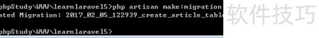 15、 成功执行后,进入 learnlaravel5/database/migrations 目录,会看到一个名为 2*createarticle_table 的文件已生成。接下来,我们需要修改该文件中的 up 方法内容,以完成数据表结构的定义与调整,确保其符合项目实际需求。