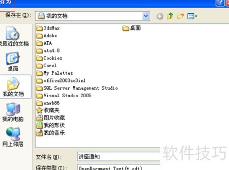 4、 完成操作后点击保存按钮,文件将自动以*.odt格式存储,具体界面所示。