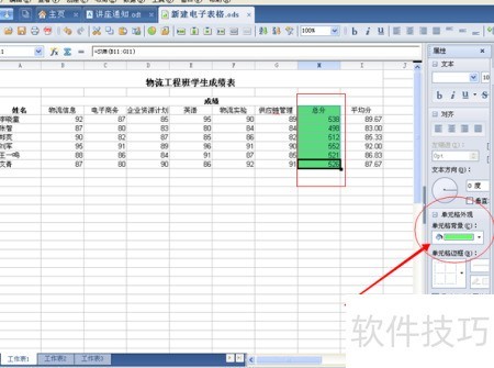 8、 选择需设置背景的单元格,按与文档相同的保存方式设定背景颜色,操作所示。