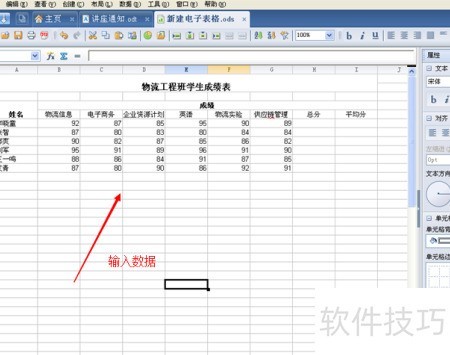 5、 首先,在已说明打开方式的电子表格中输入数据,具体操作所示。