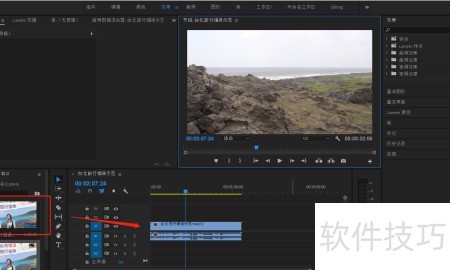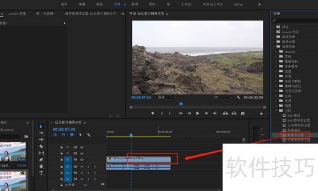 4、 将视频效果中过时类别的亮度校正器拖拽至时间轴的视频轨道上,完成添加。