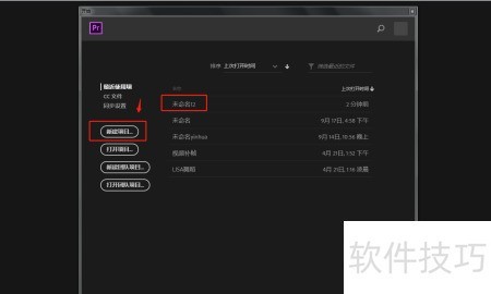 8、 打开电脑中的PR软件,新建项目,创建视频剪辑工程文件。