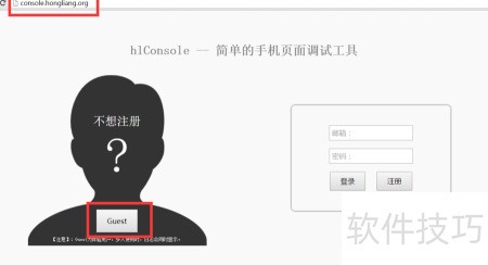 2、 第二步:登录。若不想注册,可直接使用guest游客账号体验服务。
