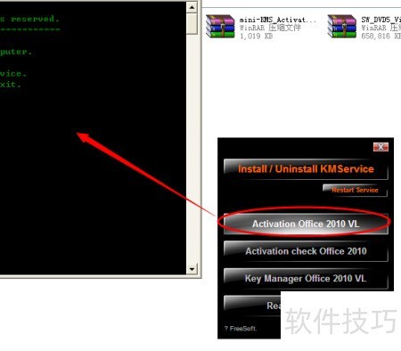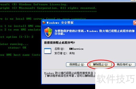 5、 接着点击第二个按钮Activation Office 2010 VL,系统将弹出命令提示符窗口,提示选择数字时,用键盘输入2,屏幕上会显示命令正在执行。此时若出现防火墙警告,请直接点击解除阻止以继续操作,确保程序顺利运行。