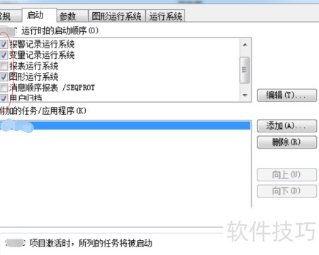 3、 启动项目时,需点击图示红圈位置,勾选报警记录、变量报警、报表运行、图标运行、用户归档等相关系统,只有完成勾选后,所选系统方可正常启动运行。