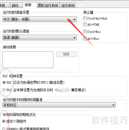 4、 在参数系统中,可调整运行语言、PLC时钟及其他相关设置。