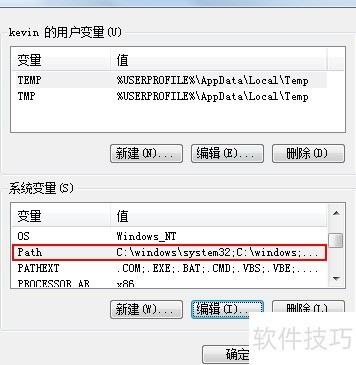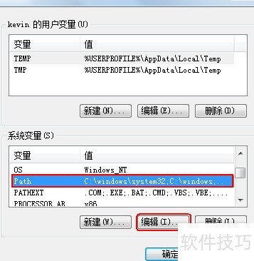 6、 在系统变量中定位Path,点击编辑按钮进行修改。