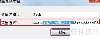 7、 将%JAVA_HOME%in添加至变量值,点击确定完成设置。