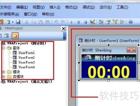9、 在Visual Basic编辑器中,可查看加载宏的工程结构及关联的窗体对象。