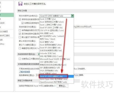 4、 在右侧下拉菜单中选择...97-03加载宏...,操作步骤详见配图说明。