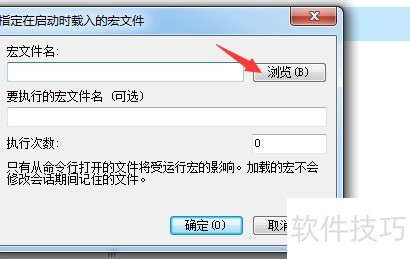 4、 此时会弹出启动时加载宏文件的窗口,点击其中的浏览按钮即可。