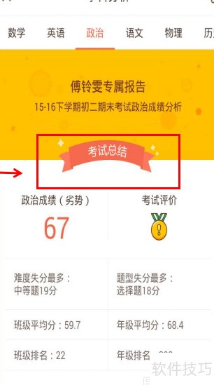 3、 内容包括科目考试成绩、失分分析、班级与年级平均分,以及该科目在班级和年级中的排名情况。
