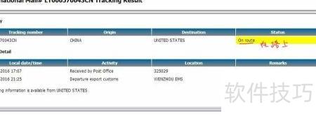 3、 以下是查询到的物流详情,内容为全英文展示,网站还提供其他功能,欢迎自行探索体验。