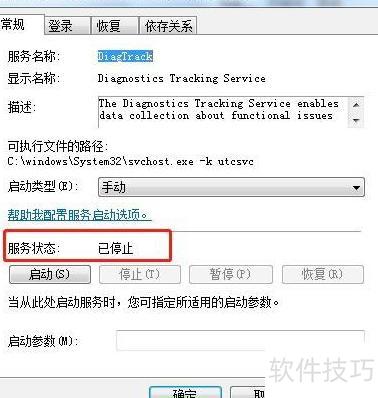 在Win7系统中,打开服务管理器,找到Diagnostics Tracking Service,右键选择停止,并将其启动类型设为禁用即可。