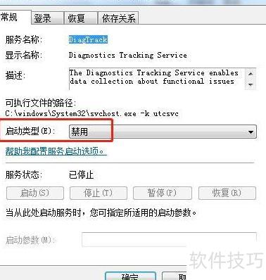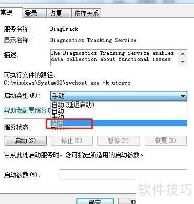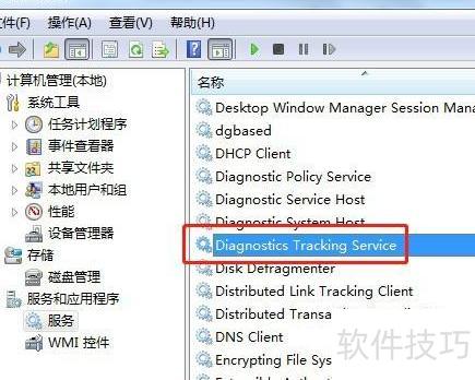 在Win7系统中,可通过运行services.msc找到诊断跟踪服务,右键选择属性,将启动类型设为禁用并停止该服务即可。