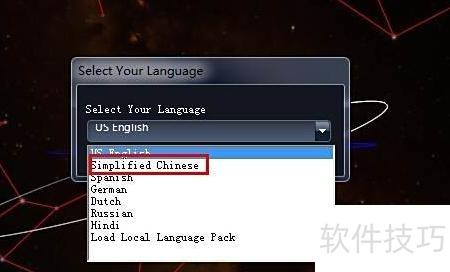 3、 点击下拉箭头,选择简体中文选项即可完成语言设置。