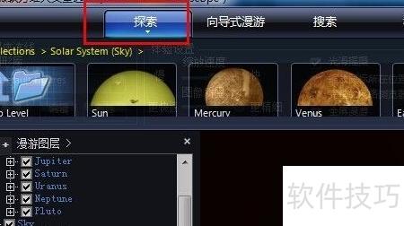 15、 在主菜单中选择向导式漫游,进入后挑选银河系作为示例星系进行探索。