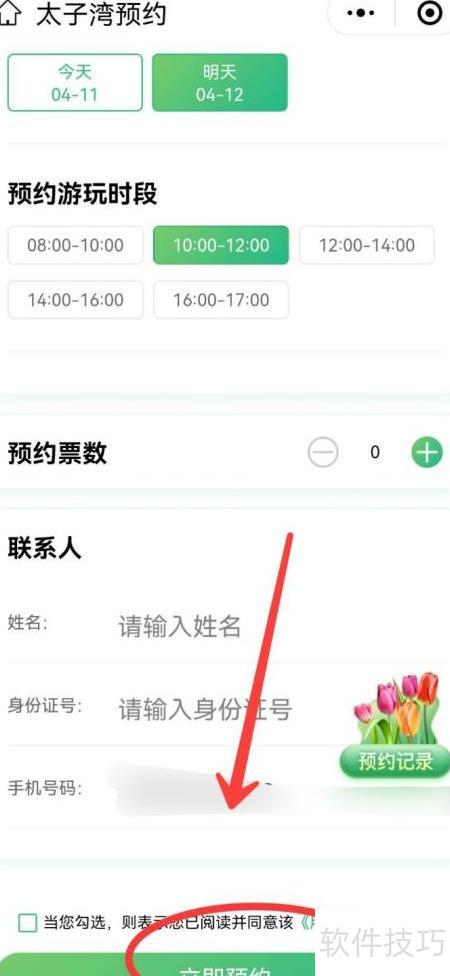 3、 选择合适的时间段,填写参观者信息后点击立即预约即可。