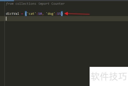 4、 输入dictVal = {cat:10, dog:15},然后按下回车键执行。