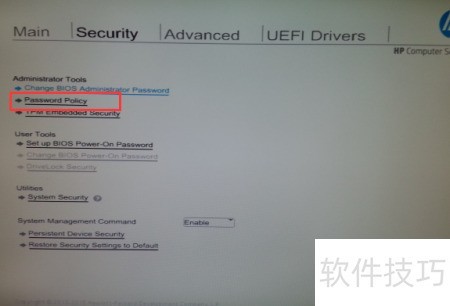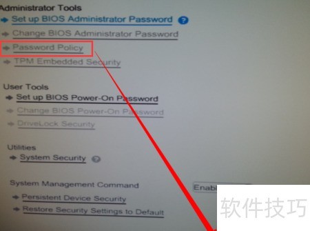 3、 在设置了管理员密码或开机密码中的任意一项后,密码策略选项将正常显示,用户可进入该选项进行相关配置。此时系统允许对密码策略进行调整,确保密码安全机制有效启用并符合使用需求。
