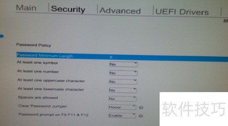 11、 上述选项用于设定管理员密码或开机密码时的相关配置要求,用户可根据需要进行选择和设置。