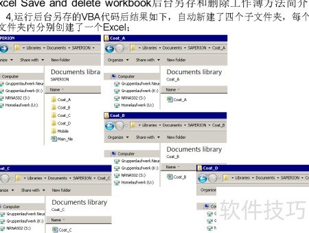 4、 执行后台保存的VBA代码后,系统自动创建了四个子文件夹,每个文件夹中均生成了一个新的Excel文件。
