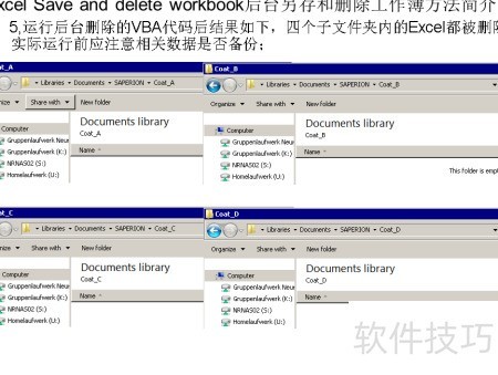 5、 执行后台删除的VBA代码后,四个子文件夹中的Excel文件均被清除,操作前务必确认重要数据已做好备份,以免造成不可恢复的损失。