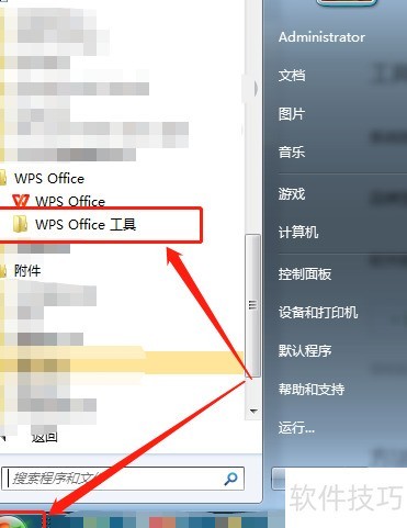1、 打开电脑的开始菜单,找到并点击WPS Office,进入后选择WPS Office工具。