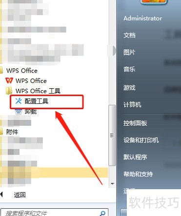 5、 打开WPS办公软件,点击工具菜单中的配置选项。