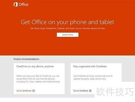 2、 点击获取Office后弹出窗口,界面为英文,显示推荐安装的两个组件:OneDrive和OneNote。这两个功能已整合至在线Office套件中。其中,OneDrive在Win10系统中默认预装,用户可直接点击OneNote进行下载与安装,操作简便,便于快速使用相关服务。