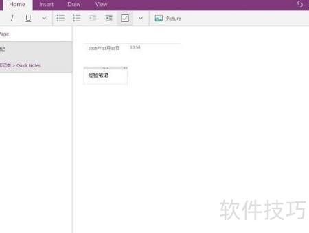 6、 打开欢迎界面后,便进入OneNote笔记本。尽管菜单多为英文,但不影响其他操作,可正常输入中文。需注意所有内容均保存在云端,本地设备不会留存记录,请妥善管理个人信息与使用习惯。
