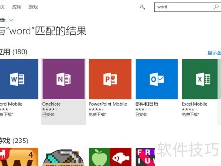 9、 想用Word、Excel等办公软件吗?打开开始屏幕进入应用商店,在左上角搜索栏输入Word,即可找到包括Word在内的主要Office组件,均提供手机与平板免费版本,直接下载安装即可使用,方便快捷,满足移动办公需求。