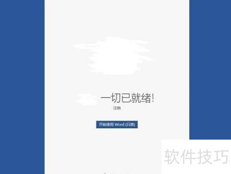 11、 双击打开Word应用后,首次运行会自动完成配置,约几分钟即可准备就绪,提示可开始使用。但免费版本无法进行编辑功能,否则个人版Office的销售将受到影响。